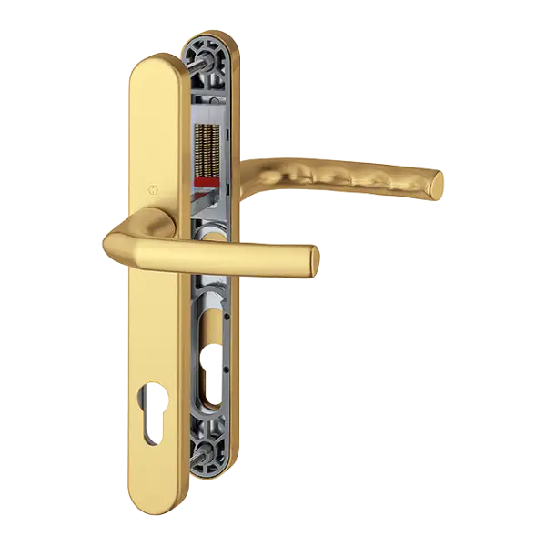 Click Here To Enlarge This Photo Of 1117/3810N HOPPE Birmingham 92mm UPVC Lever Door Handles on Narrow Backplate (215mm c/c) - Gold (3626578) Click Here To Enlarge This Photo Of 1117/3810N HOPPE Birmingham 92mm UPVC Lever Door Handles on Narrow Backplate (215mm c/c) - Gold (3626578)