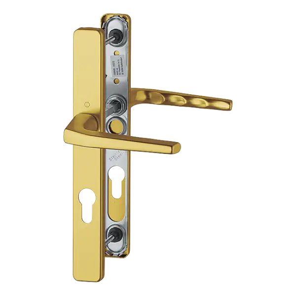 117L/2246 HOPPE Frankfurt 70mm UPVC Lever Door Handles on Narrow Backplate (200mm c/c) - Gold (2398913)