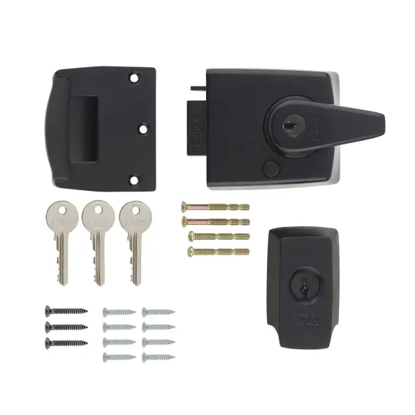 The British Standard Nightlatch is a face fitted, non handed design enabling both left and right handed operation; and the striker is designed with a 3 hole fixing for additional strength and security. The lock conforms to British Standard 3621:2007 (BS EN 12209) and meets the tough criteria/requirements laid down by insurance companies and the police.