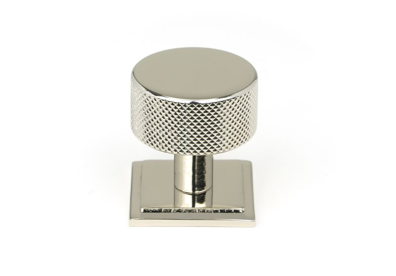 Rose Size: 32mm x 32mm The brompton suite is our most contemporary design to date, and features a textured knurled pattern. The industrial styling of the diamond effect creates a modern range of products that can be used throughout your property. This cabinet knob features a simple square rose which adds an angular contrast to the round knob. A perfect design choice for kitchen drawers, cupboards, or doors with matching t-bars and pull handles available. Available in three different sizes. Sold in singles. Supplied with an SS M4 screw.