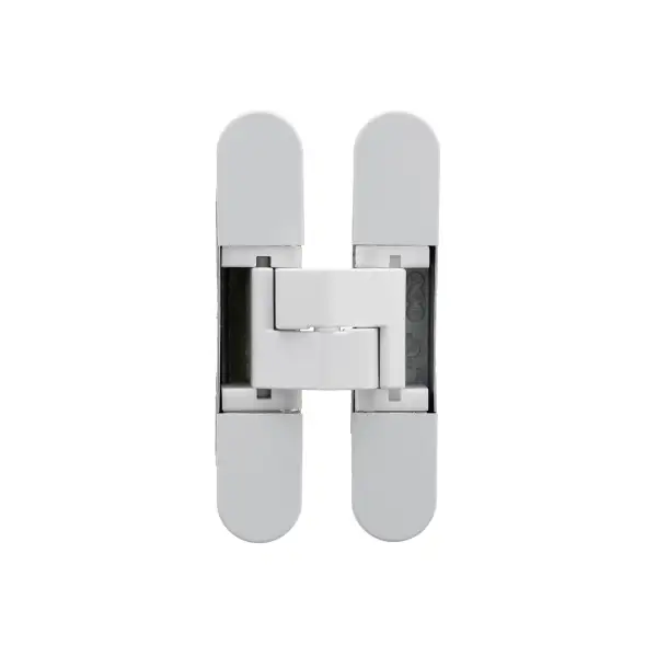 Our AGB heavy-duty concealed hinge with steel levers, are designed for large or heavy sashes. They are suitable for use with overhead door closers and floor-mounted door stops. The Eclipse 3.2 HD is ideal for flush doors (rebated or non-rebated) and aluminium doors, thanks to its 4 mm fastening thickness. It comes with flush covers and is available in 6 finishes. • Two hinges capacity is 60 kg. If the door is higher than 1600mm we suggest you add a third hinge in the central position to reduce strain on each hinge. • Three hinges capacity is 80 kg. It is recommended that the third hinge is paired at the top when using an overhead door closer or if installed in high-traffic locations. • The fourth hinge is recommended when using an overhead door closer and door seals.A modern and versatile finish that exudes sophistication, the White finish is an ideal choice for creating a clean, contemporary look.