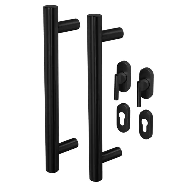 BLU Performance KM859 Kit for Straight Slide Doors, Back to Back Fix, 316 Stainless Steel Matt Black Lacquer Finish (KM859-PAIR-MBL)