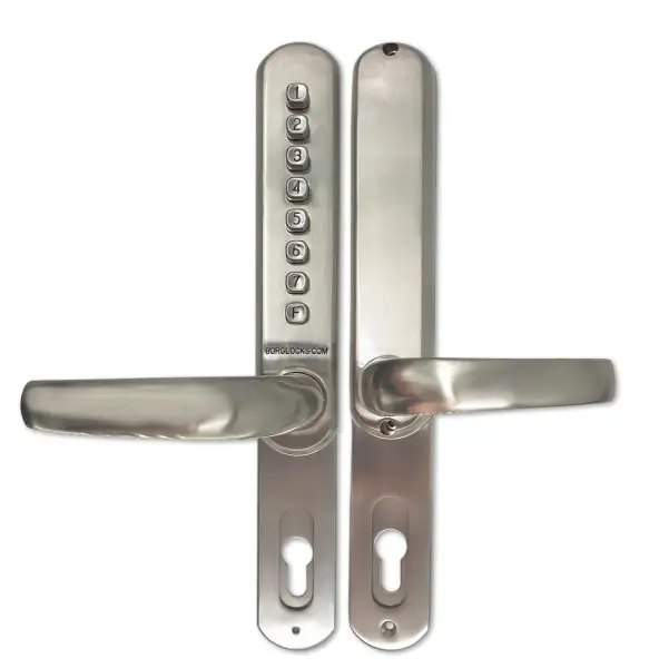 This comes with an 325mm long extension plate fitted behind the keypad and inside handle adding an extra 113mm to the length of the unit, effectively making it suitable with 90 & 92mm centred multi-point locks and helping to cover all existing holes on the door. The BL6100 is supplied with no device and is for use with either an existing set up or a third party latch.
