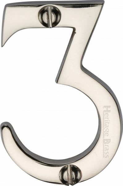C1567 3-PNF Heritage Brass Numeral 3 Face Fix 51mm (2") Polished Nickel Finish