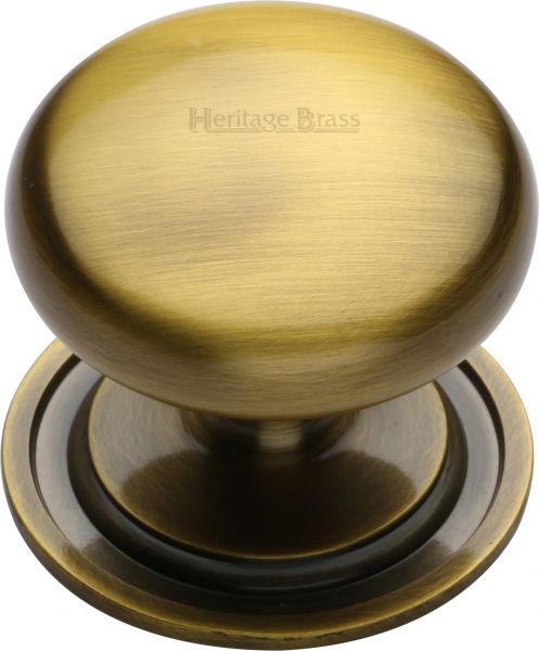 C2240 48-AT Heritage Brass Cabinet Knob Victorian Round Design with Base 48mm Antique Brass Finish