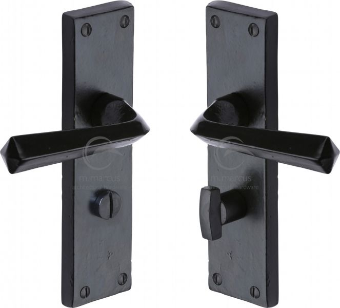 Click Here To Enlarge This Photo Of FB2530 M.Marcus Black Iron Rustic Door Handle Bathroom Set Bridgnorth Design