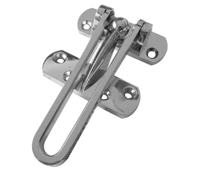 The Jedo Security Door Guard in Polished Chrome offers an additional layer of protection by preventing forced entry while allowing restricted door opening for ventilation and visitor identification. Suitable for homes, hotels, and commercial properties.