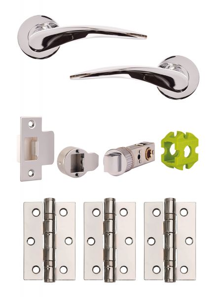 JTB72020 Jigtech Polished Chrome 'Vecta' Passage Door Pack (57mm Backset and 3" Hinges)