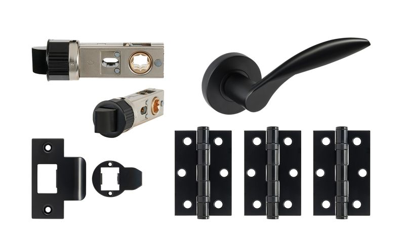 JTDP81700 Jigtech Matt Black 'Cresta' Privacy Door Pack (57mm Backset and 3" Hinges)