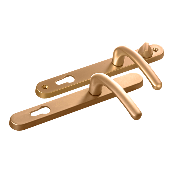 L25738 - Fab & Fix Gold Espagnolette Handles - 92/62mm Centres - 211mm Screw Centres - 243mm Backplate