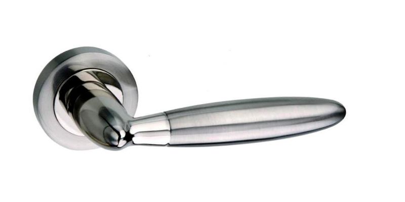 Mediterranean Gibraltar Lever on Round Rose - Satin Nickel/Polished Nickel