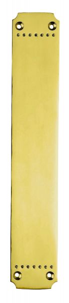 An imposing and luxuriant push plate. The backplate has radius corners with a dot pattern above and below the fixing holes. Ideal for heavy rigorous use in public buildings, pubs, restaurants or similar. Matching pull handles also available. (PF109AR/L). Suitable for domestic and commercial use.