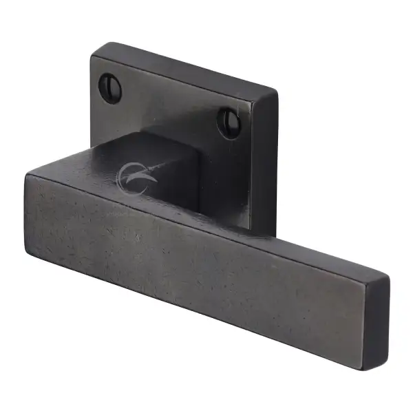 Rustic Dark Bronze Door Handle Lever Latch on Square Rose Hanwood Design