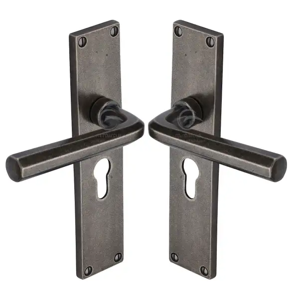 Rustic Pewter Door Handle Euro Profile Octave Design