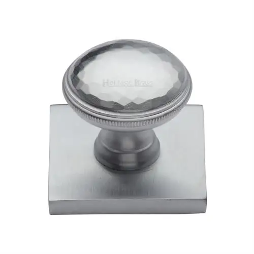 SQ4545-SC Heritage Brass Cabinet Knob Diamond Cut Design with Square Backplate 32mm Satin Chrome finish
