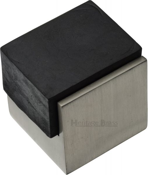 Click Here To Enlarge This Photo Of V1082-SN Heritage Brass Door Stop Square Floor Mounted Design Satin Nickel Finish