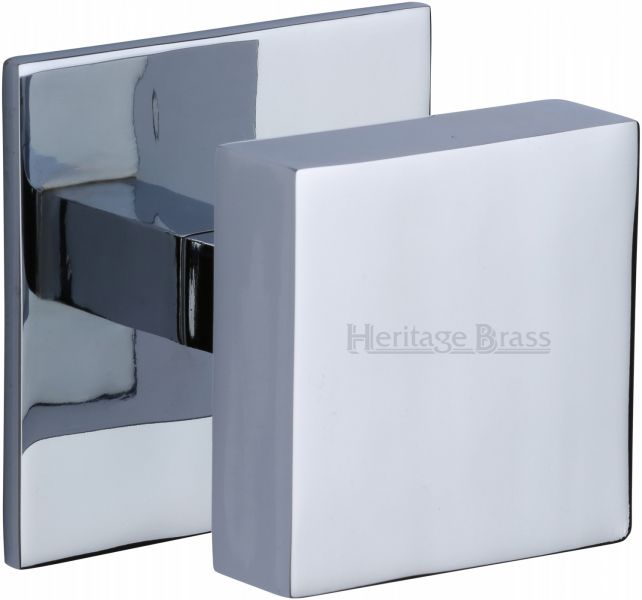 Click Here To Enlarge This Photo Of V908-PC Heritage Brass Centre Door Knob Square Design 3" Polished Chrome Finish
